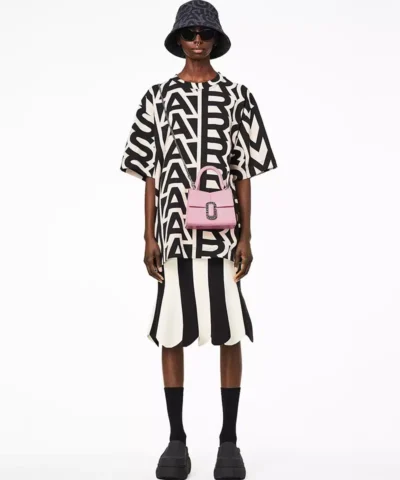 Inspired by the Fall 2016 runway St. Marc bag, the Mini St. Marc is a petite silhouette crafted from luxurious Italian leather. It’s designed with a distinctive “M” shape and sealed by a chain link J Marc hardware closure at front. Inside, it includes two card slots for easy organization. Carry by the top handle or attach the removable chain strap to wear as a crossbody bag for hands-free styling.