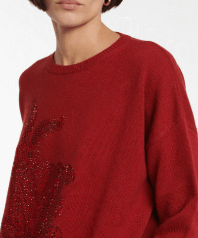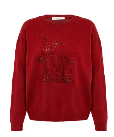 This sweater from Max Mara is embellished with tonal crystals that together form the MaxMaraGram logo. Knitted from wool and cashmere, this red design has a relaxed fit.