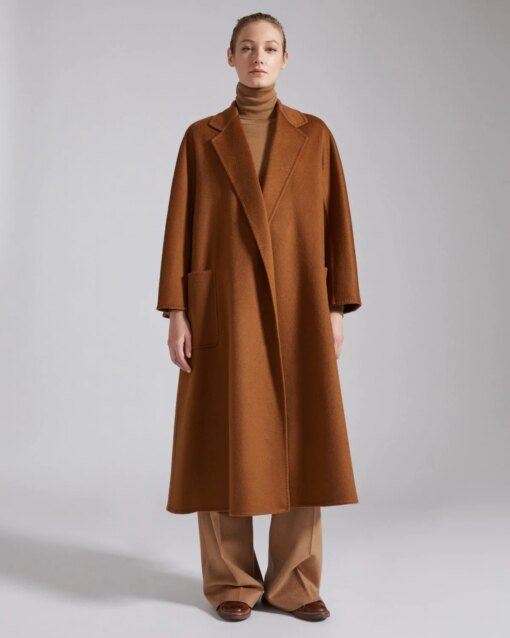 A Max Mara wardrobe classic in double-layer pure zibeline cashmere, a symbol of a laid-back allure that does not sacrifice luxurious fabrics and impeccable attention to detail. Reinterpreted in 2016 and reintroduced in all the collections since then, it is one of the iconic pieces of the Max Mara style. It stands out with its generous, enveloping A-line silhouette that embraces the body, and can be customised with the matching belt. The kimono sleeves and large patch pockets underline its understated, refined luxury.