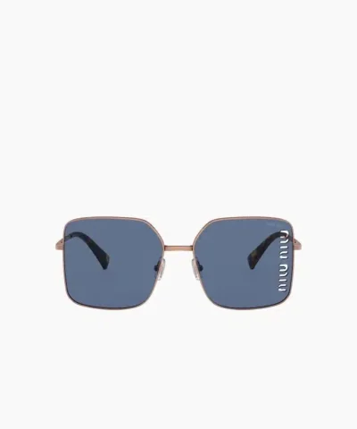 Sunglasses with sophisticated, glamorous allure. The oversized frame is characterized by square lenses defined by metal rims engraved with the Miu Miu logo. In some exclusive versions, the logo of the maison is carved into the lenses for a modern, unconventional look.