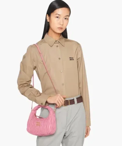 The Miu Wander bag is reinterpreted season after season, becoming an iconic accessory of Miu Miu collections. Made of matelassé nappa leather, the bag is characterized by the sophisticated, three-dimensional effect created by the refined workmanship. The hobo shape, blending retro inspirations and contemporary elegance, becomes a new synonym of modern femininity.