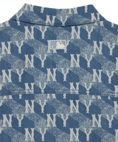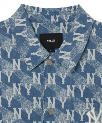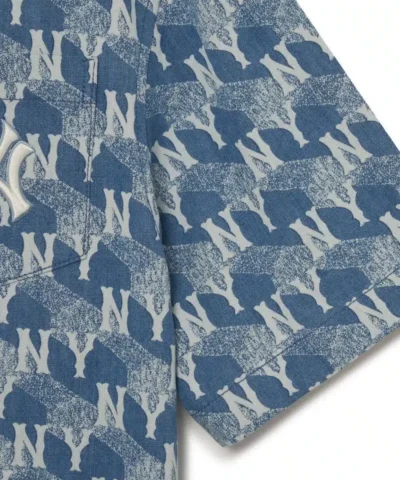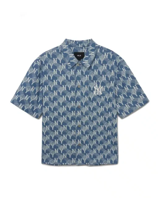 MLB Korea Cube Monogram Print Short Sleeves Denim Shirts New York Yankees
