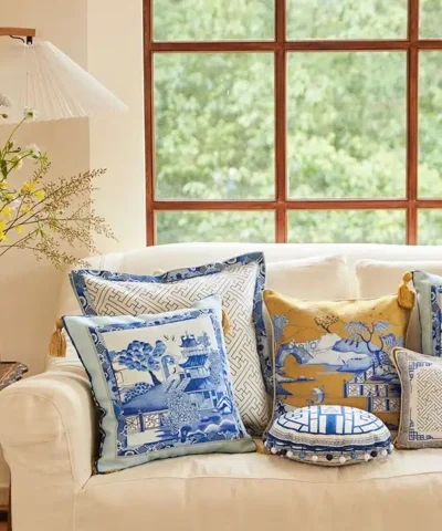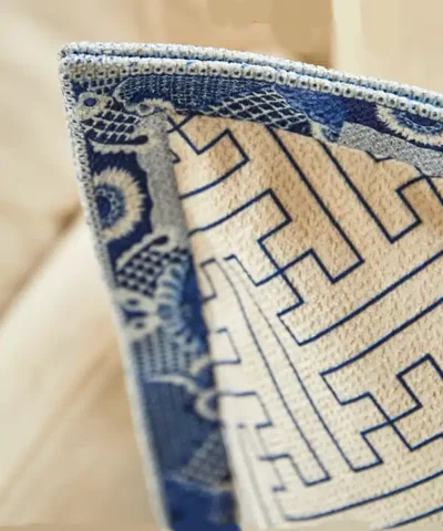 This duchesse cotton cushion reflects Blue and White Porcelain Pattern 20″ x 20″ Pillow. One side is the artistic conception of ” Misty Rain Jiangnan” in the ancient Chinese style picture. and the other side is a beautiful blue and white fret pattern. a sensorial journey for the mind, where scents, sounds, and sensations give life to delicate, familiar aesthetics.