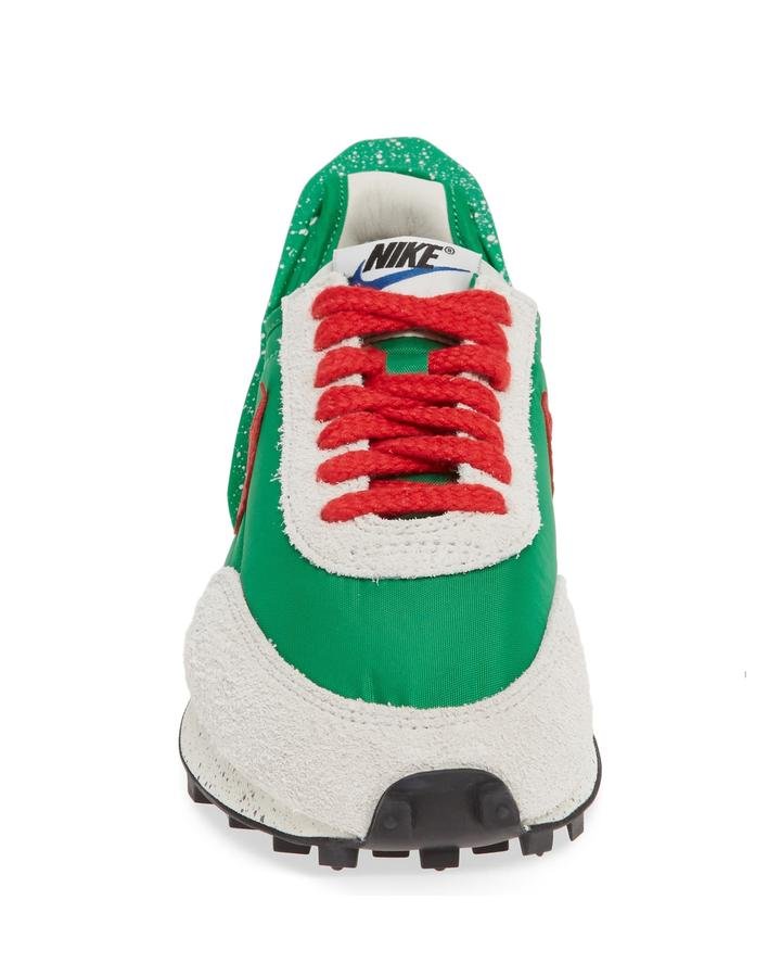 The Undercover x Nike DBreak “Black/White” is a special edition of the Nike Daybreak redesigned by Jun Takahashi. The unique interpretation of the Daybreak features the vintage running shoe’s original nylon and suede build with a prominent plastic piece added to the heel for a bold, futuristic effect. Undercover branding is added to the midsole, while the label’s “U” logo is found on the heels. This colorway features an all-black nylon and suede upper with white accents for the side Swooshes, tongue detailing, and laces. The midsole features a speckled treatment for an added touch to the Takahashi silhouette. The Undercover x Nike DBreak “Black/White” released in June 2019.