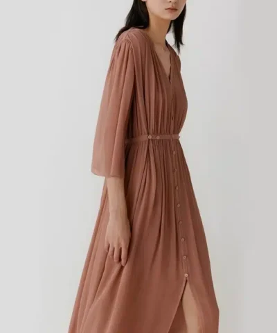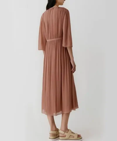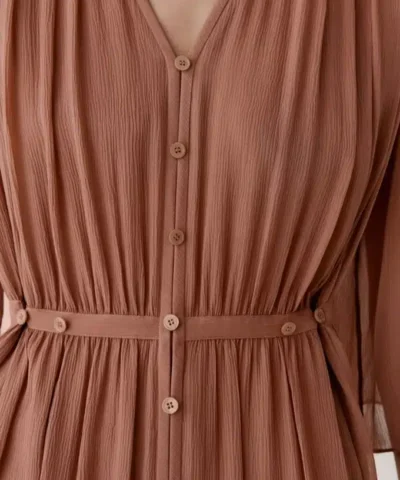 - Silk jacquard shirtdress featuring a self-tie waist sash and pleated skirt