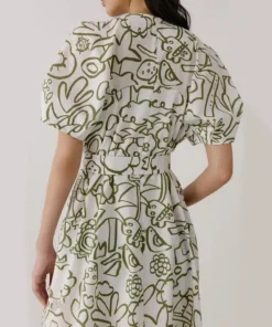 • Cotton Cotton Puff-Sleeve Midi Dress with all over free hands print.