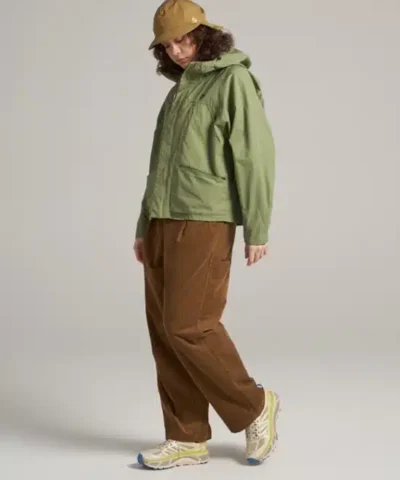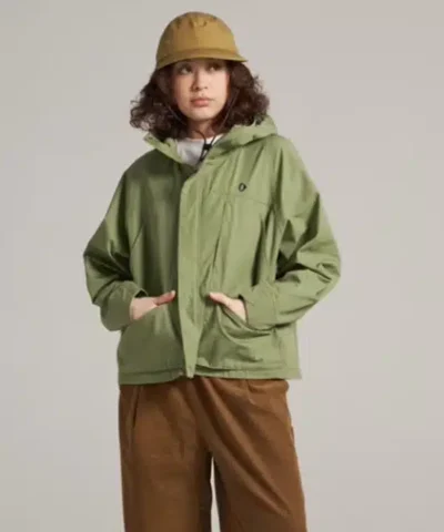 - Front zip closure with snap storm placket
