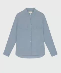 - Silk crepe de chine double pocket long sleeves shirt.