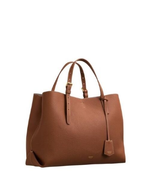 The Oroton Margot Medium Day Bag is created from ultra soft pebble leather in whiskey, which is thoughtfully paired with brass hardware throughout. This everyday bag features shoulder straps which convert to a grip top handle and a removable cross body strap, both of which are fitted with roller buckles for easy length adjustment. The interior is lined with contrast light smoke leather and has two main compartments divided by a large internal zip pocket and features a slip pocket plus a leather tab with secure dog clip closure. The bag features a foil embossed logo and a bag charm with a metal plate as a finishing touch.