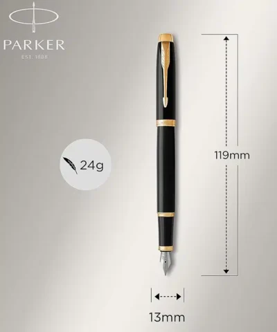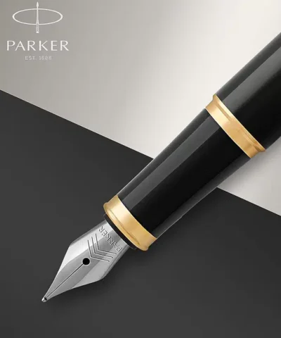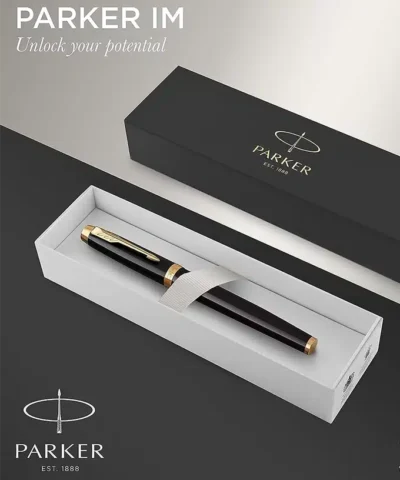 Parker IM Black with Gold Trim Fountain Pen. Parker IM pens are highly professional and trustworthy comes with unlimited potential. Featuring stainless steel nib and complementing gold plate trims echoes the Parker legacy. Detailed refinements make the writing experience delightful and dependable.