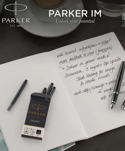 - An affordable yet sophisticated gift, your fountain pen is presented in a PARKER gift box with a long blue QUINK ink cartridge