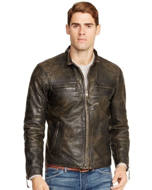 Made from smooth, vegetable-dyed leather, this rugged jacket goes through a vintage processing technique for a distressed, lived-in look. Quilted details add an extra edge to this moto-inspired style.