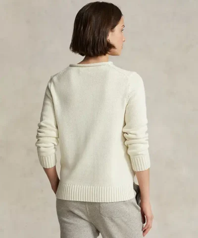 This soft cotton crewneck sweater is constructed with a rolled neckline and features an intarsia-knit and embroidered rendering of our iconic Polo Bear dressed in a toggle coat and cable-knit sweater.