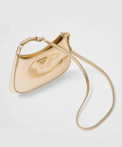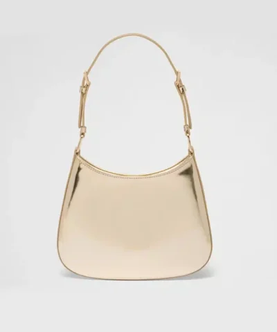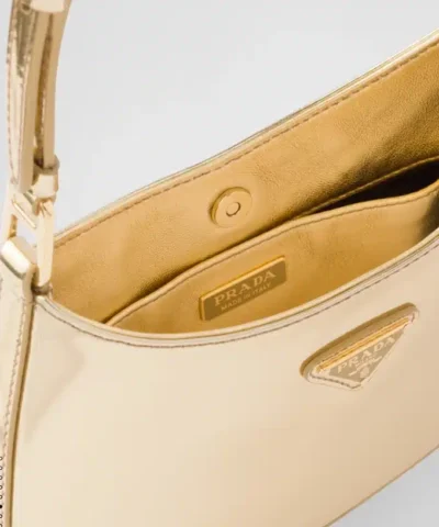 The Prada Cleo bag with sophisticated allure reinterprets an iconic design of the brand from the ’90s. The sleek, curved lines emphasized by the particular sloping construction on the bottom and sides give this hobo bag a soft, light look. Brushed leather, a distinctive material of Prada collections, is modern and versatile, perfect for always new combinations and contrasts. The enamel triangle logo completes the silhouette.