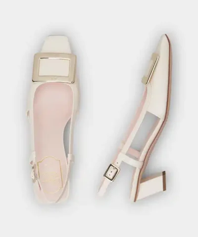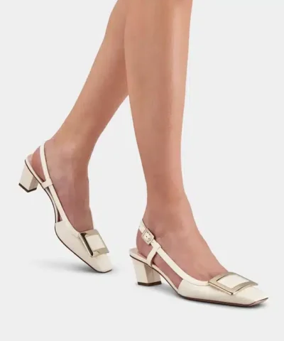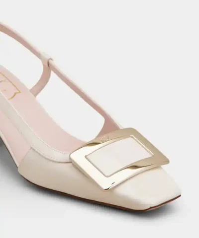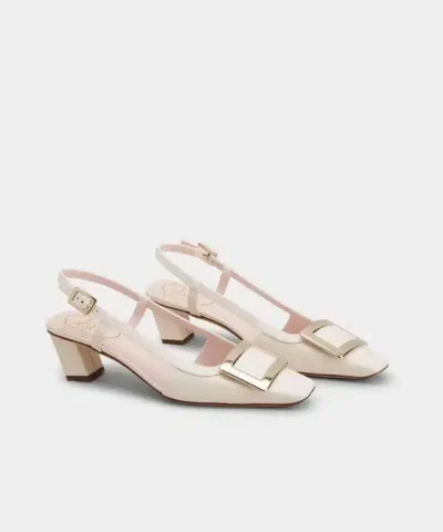 Roger Vivier Belle Vivier Metal Buckle Slingback Pumps in Off White Patent Leather
