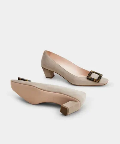 Roger Vivier Belle Vivier Stone Buckle Pumps in Beige Suede