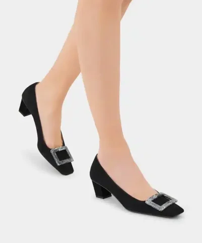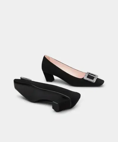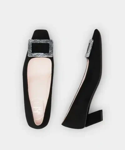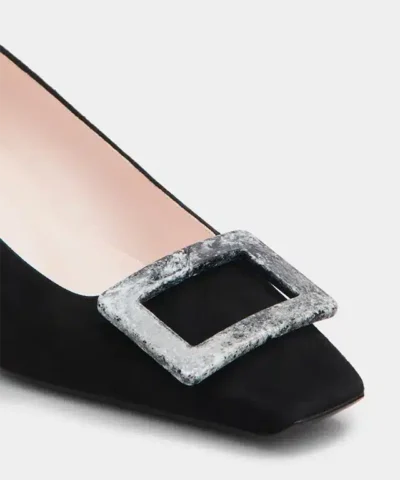 Roger Vivier Belle Vivier Stone Buckle Pumps in Black Suede