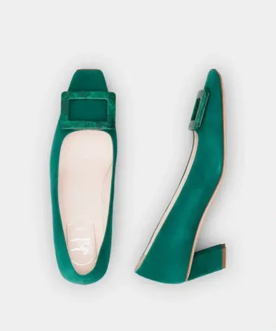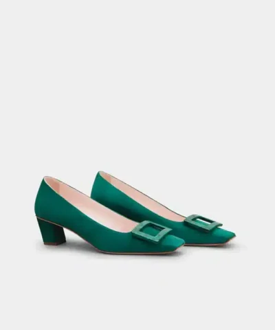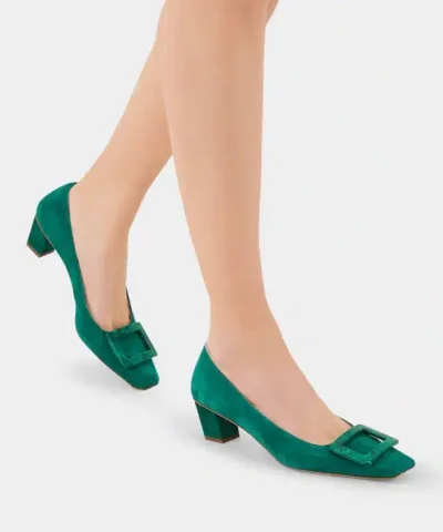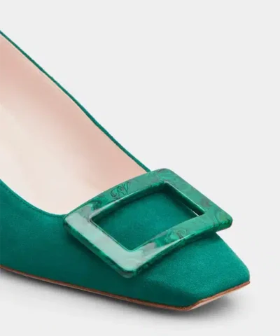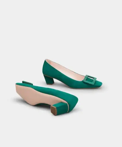 Roger Vivier Belle Vivier Stone Buckle Pumps in Green Suede