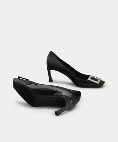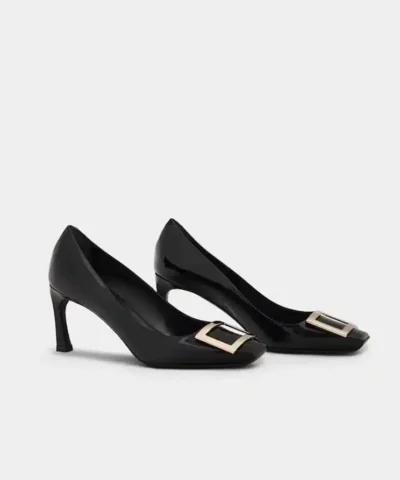 Roger Vivier Trompette Metal Buckle Pumps in Black Patent Leather
