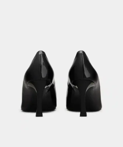 Pumps in patent leather featuring a metal buckle. The classic yet innovative design of the curved Trompette heel lends a timeless allure to the Belle Vivier.