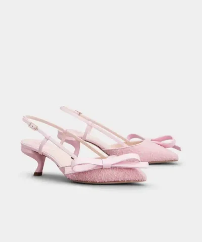 Roger Vivier Virgule Bow Slingback Pumps in Pink Fabric