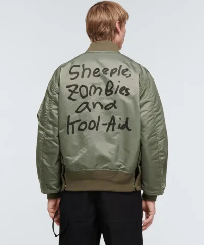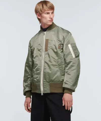 Japanese label Sacai often takes cues from utilitarian styling – and this khaki green MA-1 jacket is a perfect example. Arriving in collaboration with MADSAKI – a New York and Tokyo-based artist known for his spray paint work – it’s crafted in Japan from nylon and printed across the back with playful branding for a signature touch. Cut to an oversized fit and complete with silver-toned hardware, it promises to become a staple within your wardrobe rotation.