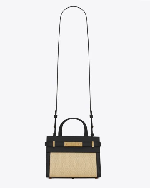 Saint Laurent Nano Manhattan Raffia & Leather Crossbody Bag In Black