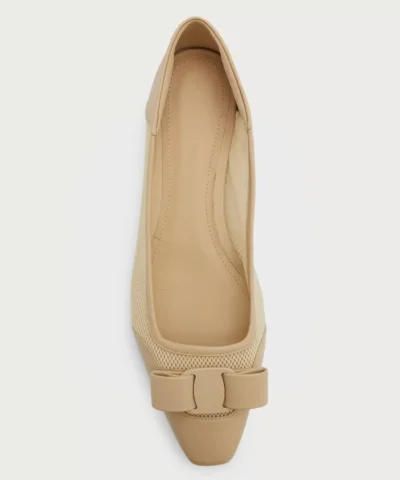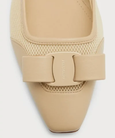 - Ferragamo “Anz” ballerina flats in knit fabric and calf leather with signature logo engraved bow accent