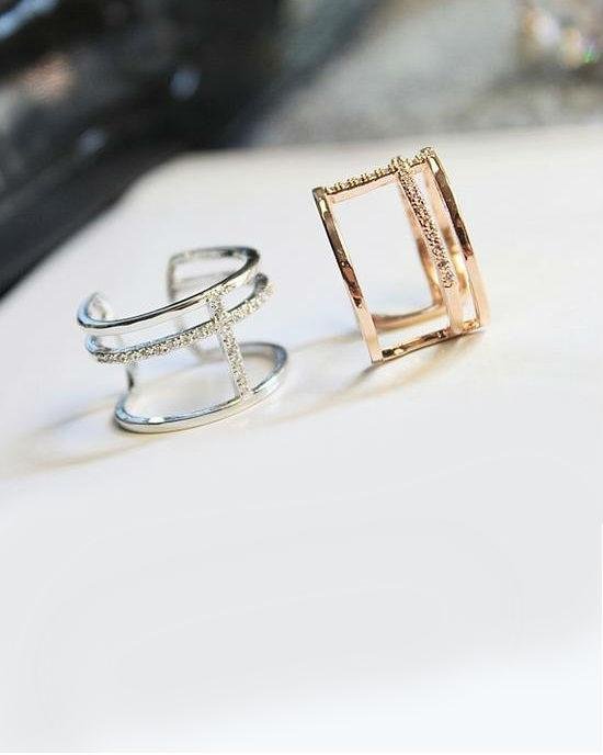 Stroll Girl 925 Sterling Silver Simple Opening Double-Layer Cross Ring
