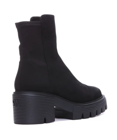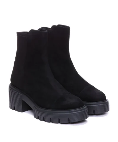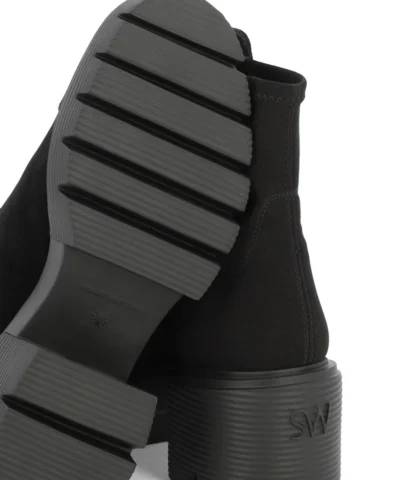 The 5050 SOHO BOOTIE combines two of our signature looks: Our iconic 5050 back-stretch boot design with our best-selling downtown-inspired SOHO lug sole featuring a bold 60-mm block heel. Crafted by our artisans in Spain, it features our iconic half-microstretch, half-leather construction that gives it the sleek, comfortable fit you know and love.