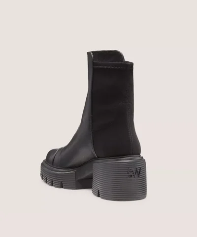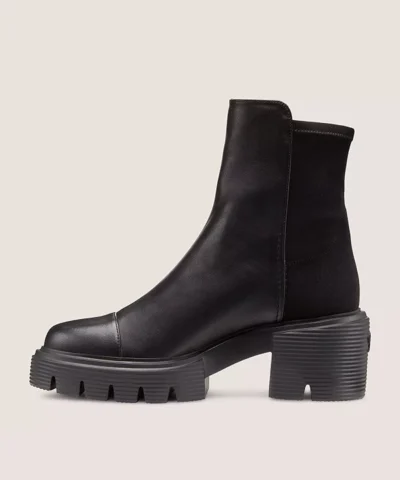 The 5050 SOHO BOOTIE combines two of our signature looks: Our iconic 5050 back-stretch boot design with our best-selling downtown-inspired SOHO lug sole featuring a bold 60-mm block heel. Crafted by our artisans in Spain, it features our iconic half-microstretch, half-leather construction that gives it the sleek, comfortable fit you know and love.
