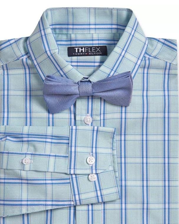 Smarten his style for special occasions with the polished plaid dress shirt and sophisticated bow tie included in this luxe set from Tommy Hilfiger.