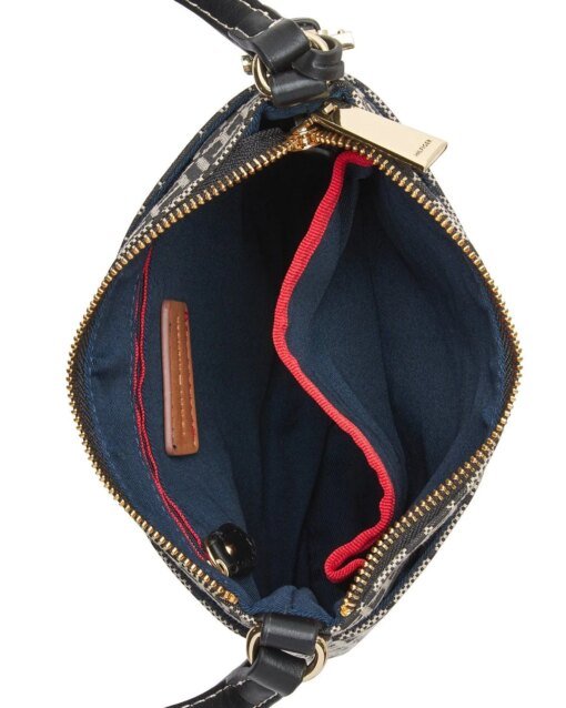 Thick contrast stitching and a sophisticated hangtag further the classic look of a Tommy Hilfiger crossbody designed to hang conveniently near the hip in monogram jacquard.