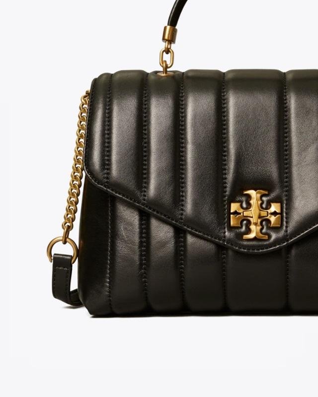 The new Kira Quilted Satchel with our Double T as a graphic turn-lock closure. The linear quilting and luxurious leather recall the plush interiors of classic cars. Enduringly chic, it has an envelope edge and two carrying options: by the top handle or by the chain-accented shoulder strap.