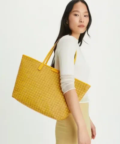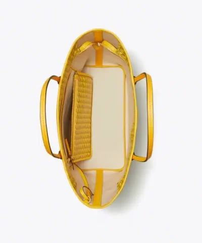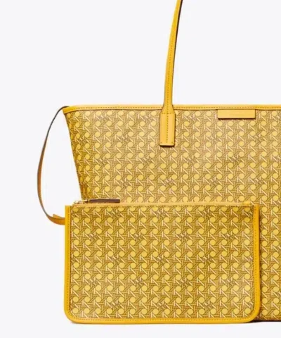Ready for anything. A stylish tote that is supremely functional. Lightweight and durable in water-resistant coated canvas, our new Ever-Ready Tote has a secure zipped top and comes with a matching pouch. Slim straps are long enough to comfortably sit over the shoulder. Our iconic basketweave print is inspired by Tory’s longtime fascination with basketry: Straw baskets in her Valley Forge home, woven bags found on travels, the caning of Parisian café chairs. The micro motif is both a statement and neutral.