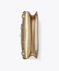 Enduring glamour. Diamond pintucks. Brushed gold chain, braided with leather. A feminine silhouette sealed with an oversized Double T. The Fleming Soft Chain Wallet is made of the softest leather, with pockets for cards, a phone and full-length bills.