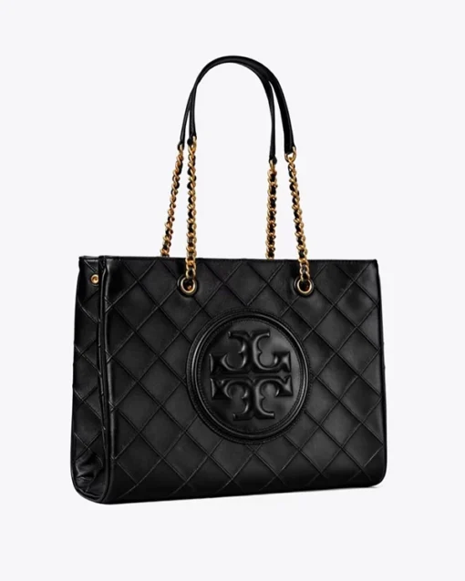 Enduring glamour. The Fleming tote is made of the softest leather with pintucks in a diamond pattern. The feminine silhouette has an oversized bombé Double T and brushed chain strap.