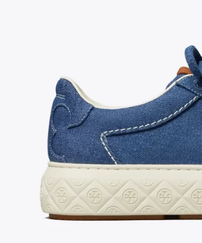 If a ladybug lands on you, it’s good luck…The Ladybug Sneaker’s exaggerated sole is dotted with our T Monogram to mimic the beloved bug’s signature spots. Hand-stitching on the denim upper honors old-school craftsmanship. Tory’s love of tennis is translated in the sole’s clever net-like pattern. And the serif curves of our Double T are abstracted at the heel. A retro style with pumped-up volume