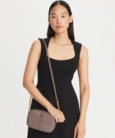 Tory Burch Mcgraw Camera Bag In Silver Maple