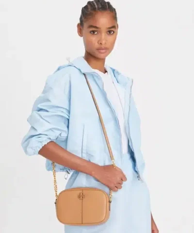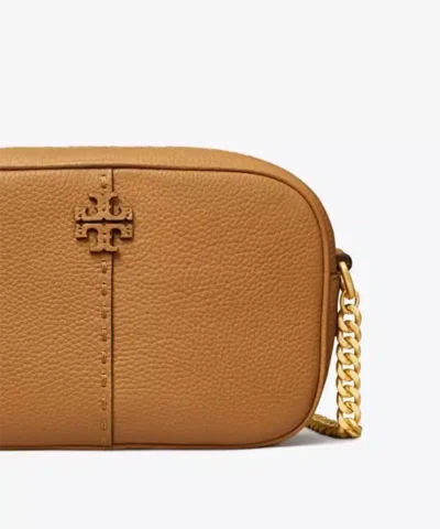A most-loved shape. The McGraw Camera Bag is softly structured in pebbled leather. It has a die-cut Double T, vertical pick stitching, sewn by hand, and an adjustable chain-accented strap.
