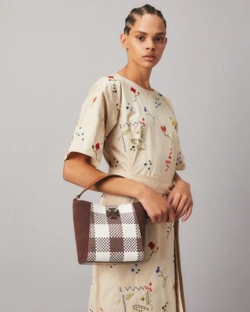 Be the first to review “Tory Burch Mcgraw Woven Plaid Small Bucket Bag”