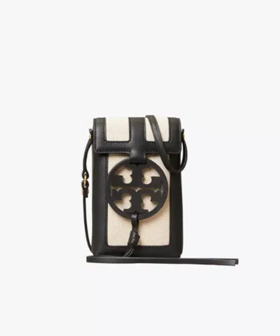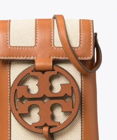 New Tory Burch Miller Canvas Quadrant Phone Crossbody. From Tory Burch, “The Miller Quadrant Phone Crossbody is made of canvas and napa leather, with a laser-cut double ‘T’ — hand-painted around the edges and finished with a tassel. Fits all phone sizes up to an iPhone 11 Pro and Samsung Galaxy Note 10+. Canvas, napa leather. Flap with magnetic snap closure. 3 interior card slots. Adjustable crossbody strap with 23.3″ drop. Height: 6.8″; length: 4.2″; depth: 1.2″.”