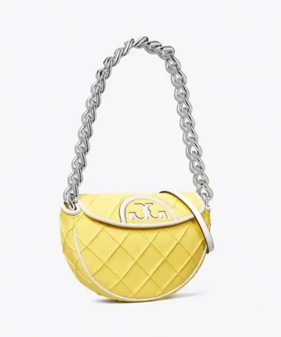 Be the first to review “Tory Burch Mini Fleming Soft Patent Border Crescent Bag”