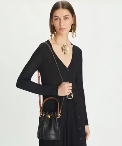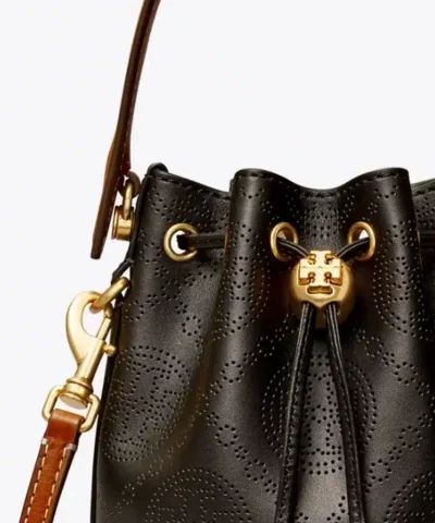 Be the first to review “Tory Burch Mini T Monogram Perforated Bucket Bag, Black”