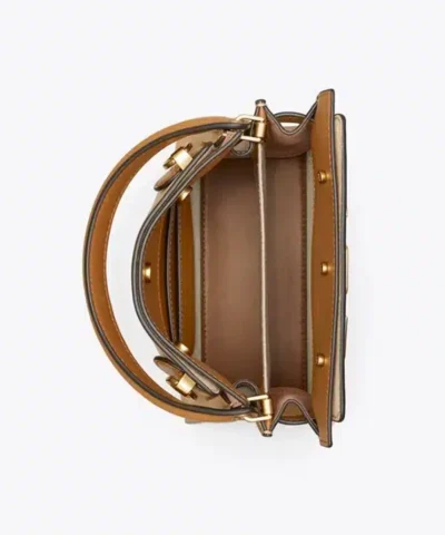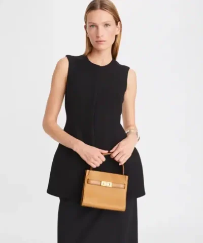 From our runway: The Petite Lee Radziwill Double Bag contrasts structure and softness, mixed materials, different colors. Composed of layers that unfold like the collar of a trench coat, it can be worn opened, semi-buttoned or fully closed. Beautifully crafted in leather and suede, with signature lock-and-key hardware and an optional crossbody strap. The collection is named for Lee Radziwill, who was fearlessly unique.
