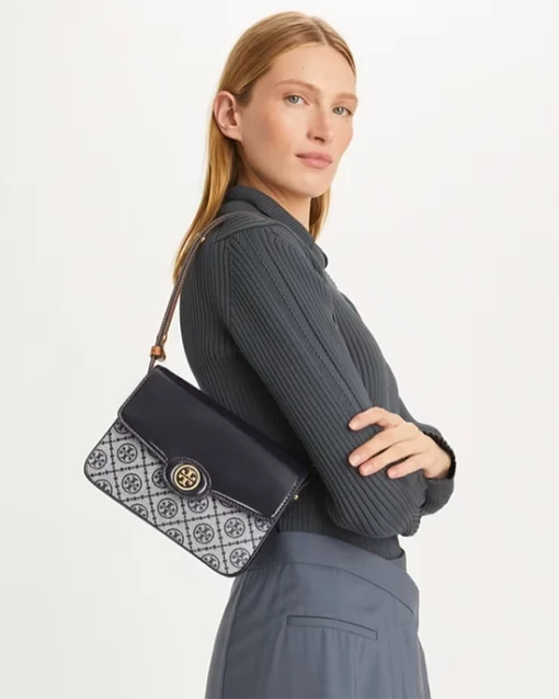The T Monogram is a classic pattern inspired by traditional Pennsylvania Dutch quilting, and celebrating our iconic logo. The collection speaks to the timelessness of great style. Timeless and versatile, the Robinson Convertible Shoulder Bag is made of woven jacquard and fine leather with smooth rounded edges.