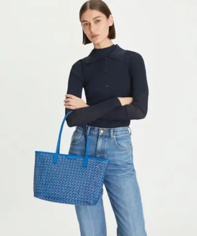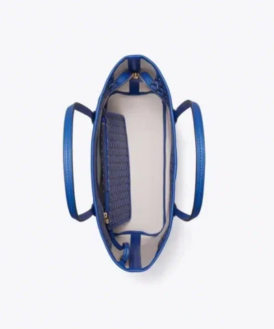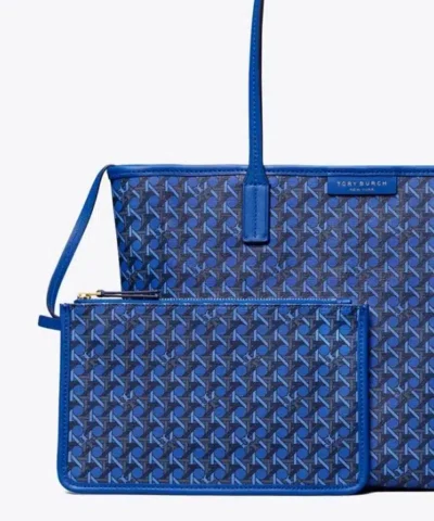 Ready for anything. A stylish tote that is supremely functional. Lightweight and durable in water-resistant coated canvas, our new Small Ever-Ready Tote has a secure zipped top and comes with a matching pouch. Slim straps are long enough to comfortably sit over the shoulder. Our iconic basketweave print is inspired by Tory’s longtime fascination with basketry: Straw baskets in her Valley Forge home, woven bags found on travels, the caning of Parisian café chairs. The micro motif is both a statement and neutral.