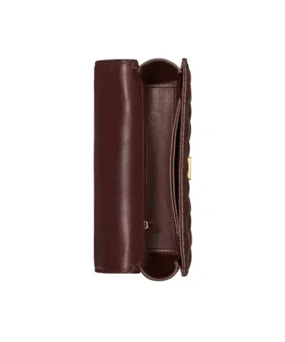 Bold diamond quilting and smooth leather, with refined details and construction. Our iconic Double T in embossed bombé. The adjustable strap, woven with brushed gold chain, has a double shoulder guard and can also be carried crossbody.