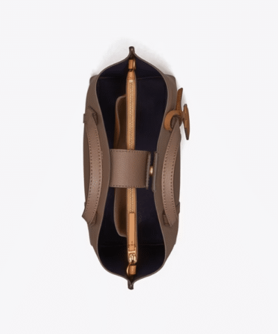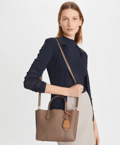 Made for multi-tasking. Our small Perry Triple-Compartment Tote Bag is made of rich Italian pebbled leather that’s bonded inside — making it soft yet structured. Contrast-color details appear throughout: from the interior to the brushed gold charm. It has a center zip pocket and an optional crossbody strap.