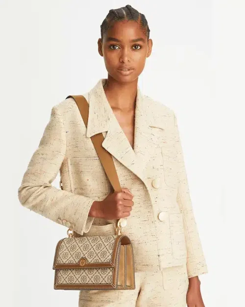 Meticulously crafted in woven jacquard, the shoulder bag has a ’70s feel, with its structured shape and sporty webbing strap. Lined in soft microsuede, the interior has multiple pockets to organize your phone and other small essentials. Every detail is considered, with special attention to function and versatility.